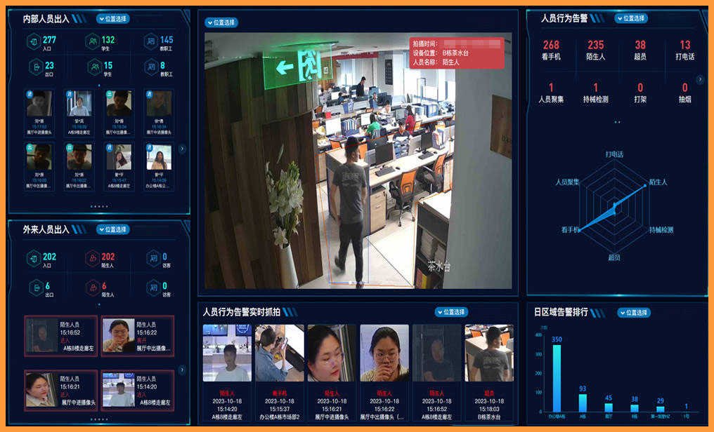 通過部署集成行為識(shí)別功能的智能攝像頭與數(shù)據(jù)分析平臺(tái),實(shí)現(xiàn)對(duì)園區(qū)周界、重要出入口、公共區(qū)域的24小時(shí)智能監(jiān)控。系統(tǒng)能夠自動(dòng)識(shí)別攀爬、非法闖入、可疑滯留等行為,并實(shí)時(shí)推送告警信息至安保人員移動(dòng)終端。